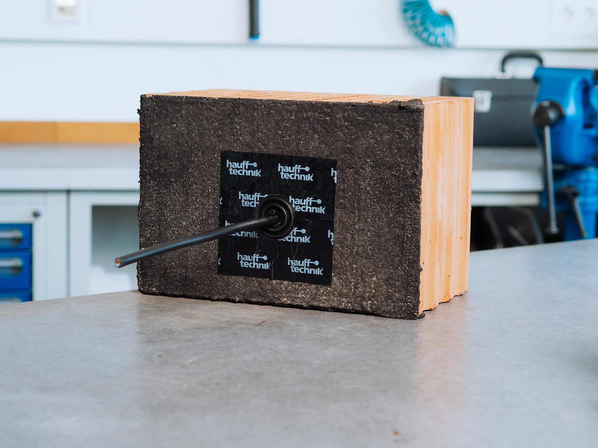 Nachträglich einbaubare, flexible Hausausführung zur Verteilung einer Strom- bzw. Kommunikationsleitung auf dem Grundstück. Zum Einbau in alle gängigen Wandarten nach DIN 18533 W1.1-E, W1.2-E, W2.1-E und WU-Beton nach DIN 1045.